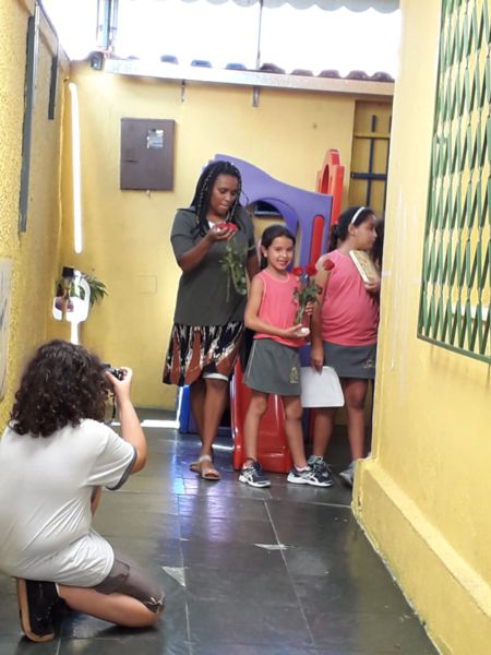 Durante o trabalho de preparação da homenagem, exploramos diversas linguagens. Na linguagem digital, tivemos registros fotográficos realizados pelos alunos do 7.º ano.